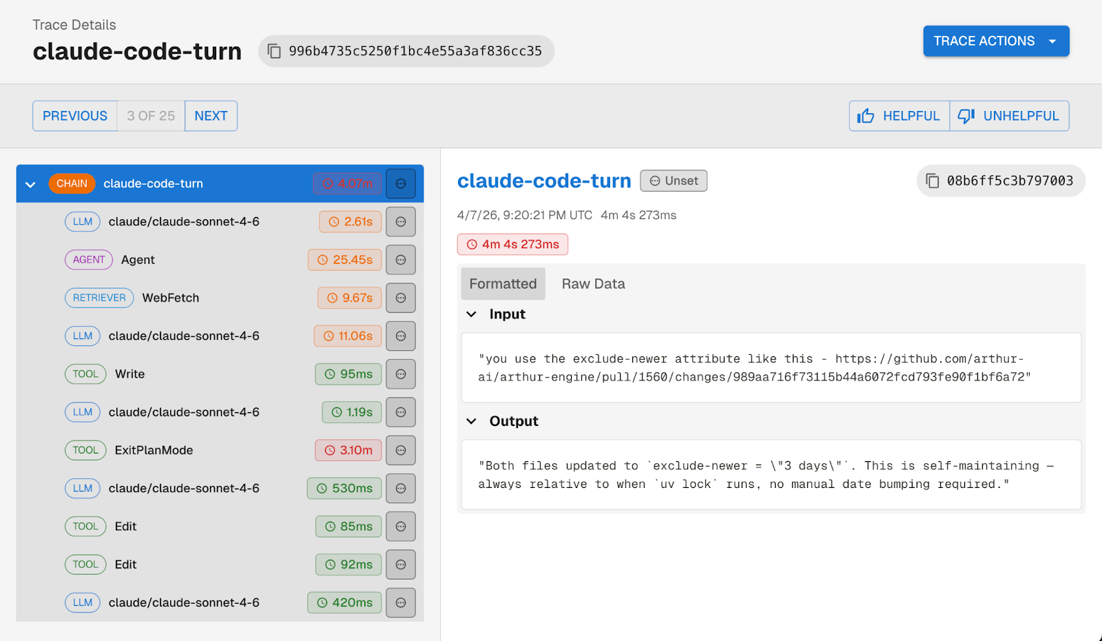 We built an open-source integration that changes that. It hooks into Claude Code's event system and sends structured OpenInference traces to Arthur Engine giving you full visibility into every turn, every tool call, and every LLM request.